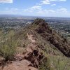 The Cholla Trail is less steep and a bit longer (3.5 miles round trip) than the Echo Canyon trail. From the trailhead, there are excellent views of the Phoenician resort as well as some of the finer houses and resorts surrounding the mountain. As you climb, views abound from right and left. The trail is well marked and easy to follow for the first 1.5 miles. The last 0.25 miles require some scrambling. Follow the blue reflectors reflectors on the rock to stay on the route. Enjoy the views from the top!