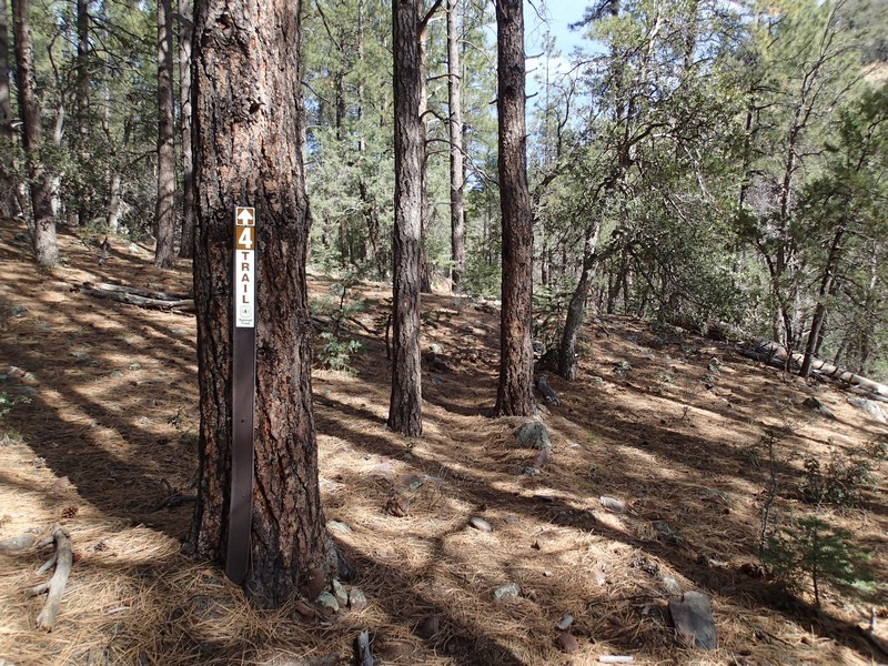 From the parking area, you will quickly reach the trail junction for trail #9434 (signed) heading left across the creek and trail #4 (signed) (JCT 1R on the map). Stay right to stay on Trail #4. The trail will cross the creek a few times. Depending on the time of year, there should be a bubbling creek to serenade you on this section. After about 0.5 miles of hiking, the trail will climb out of the creek area and provides some good views. The foliage is significantly different along this section, more desert scrub and cactus. In addition, there is no shade on this section.