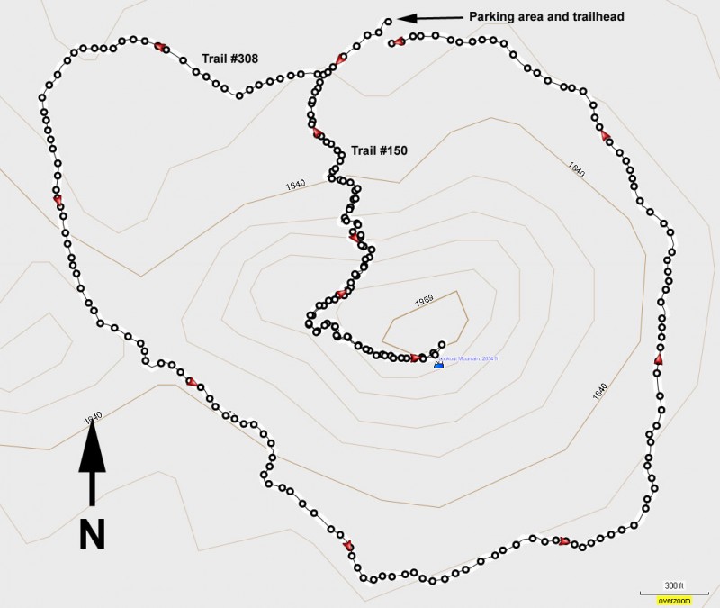Follow the trailhead signs for #308. This hike description goes counter-clockwise. Although there are many trails that branch off towards the houses or towards the peak, the major trail junctions tend to have a sign pointing the correct trail. If a trail has a line of rocks across it, this is not the correct trail direction. Some route finding is necessary on the back side to stay on the trail, but even if you get off trail, it would be quite difficult to get lost. All you need to do is keep Lookout Mountain on your left.