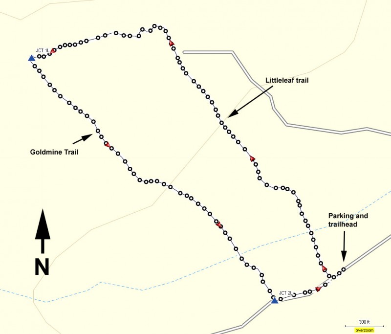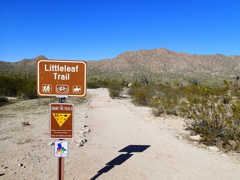 This trail is a nice introduction to hiking in the deserts of Arizona. After paying the $6 fee, start at the well signed trailhead. Start along the signed and easy to follow littleleaf trail. You'll see all the sonoran desert cacti here, including Saguaro, barrel, and cholla. The trail is easy to follow as you'll hike 0.7 miles to the junction with the Goldmine trail (Jct 1L on the map). Turn left at this well signed trail junction onto the Goldmine trail. From here, the trail widens, but it's still easy to follow. You'll follow this trail 0.6 miles as it returns to the start of the hike and parking area (don't forget to make a left turn at signed junction JCT2L on the map).